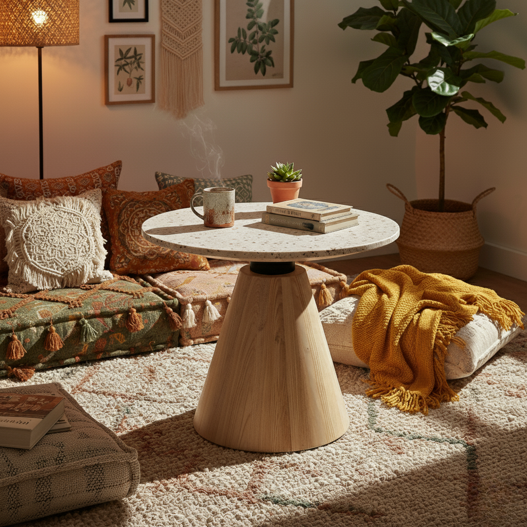 • In modern minimalist spaces, its terrazzo surface adds texture and visual intrigue.