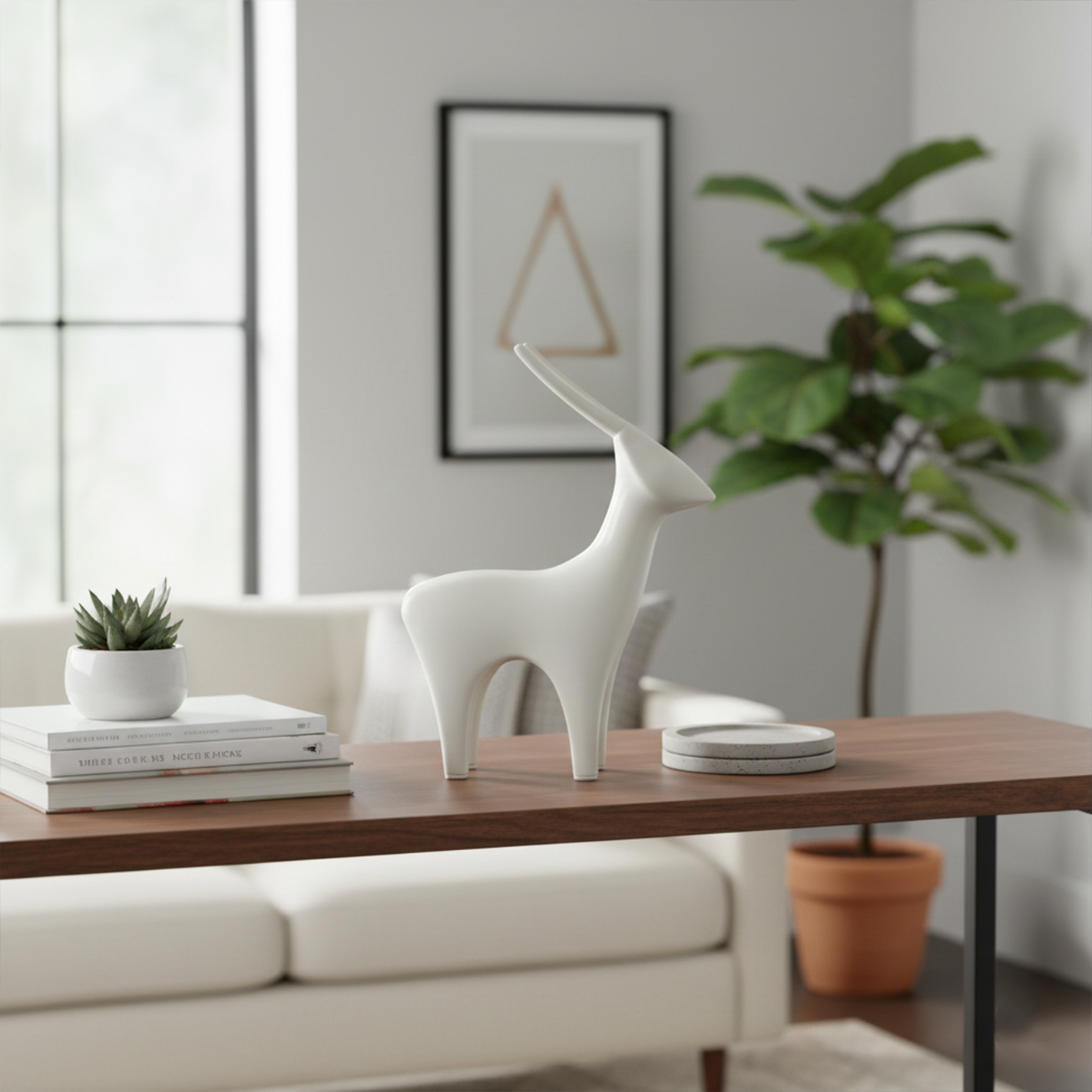 Hirsch merupakan dekorasi berbentuk hewan kijang dengan bentuk dan warna yang minimalis.