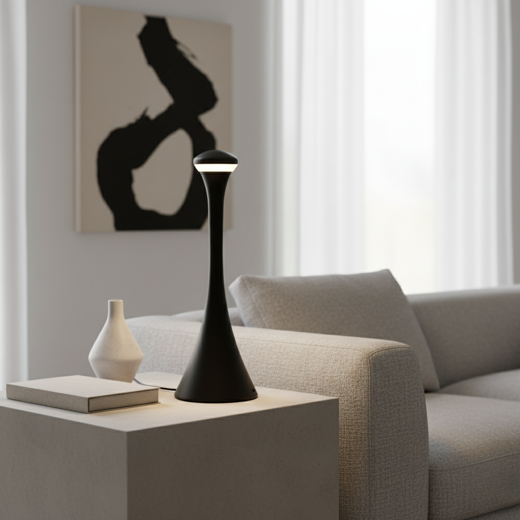 The Noctis Table Lamp embodies the perfect balance of elegance, innovation, and enduring craftsmanship. Sculpted from premium aluminum and metal, it offers a sleek, minimalist silhouette that enhances any modern interior. With intuitive touch control and three adjustable color temperatures—warm, white, and warm white—it adapts effortlessly to every mood and setting. Its high-capacity rechargeable lithium battery provides up to 20 hours of cordless illumination, ensuring lasting brilliance and freedom from clutter. Designed for comfort, sustainability, and style, the Noctis redefines modern lighting with quiet sophistication—where artistry meets technology, and every touch brings a new dimension of light to life.