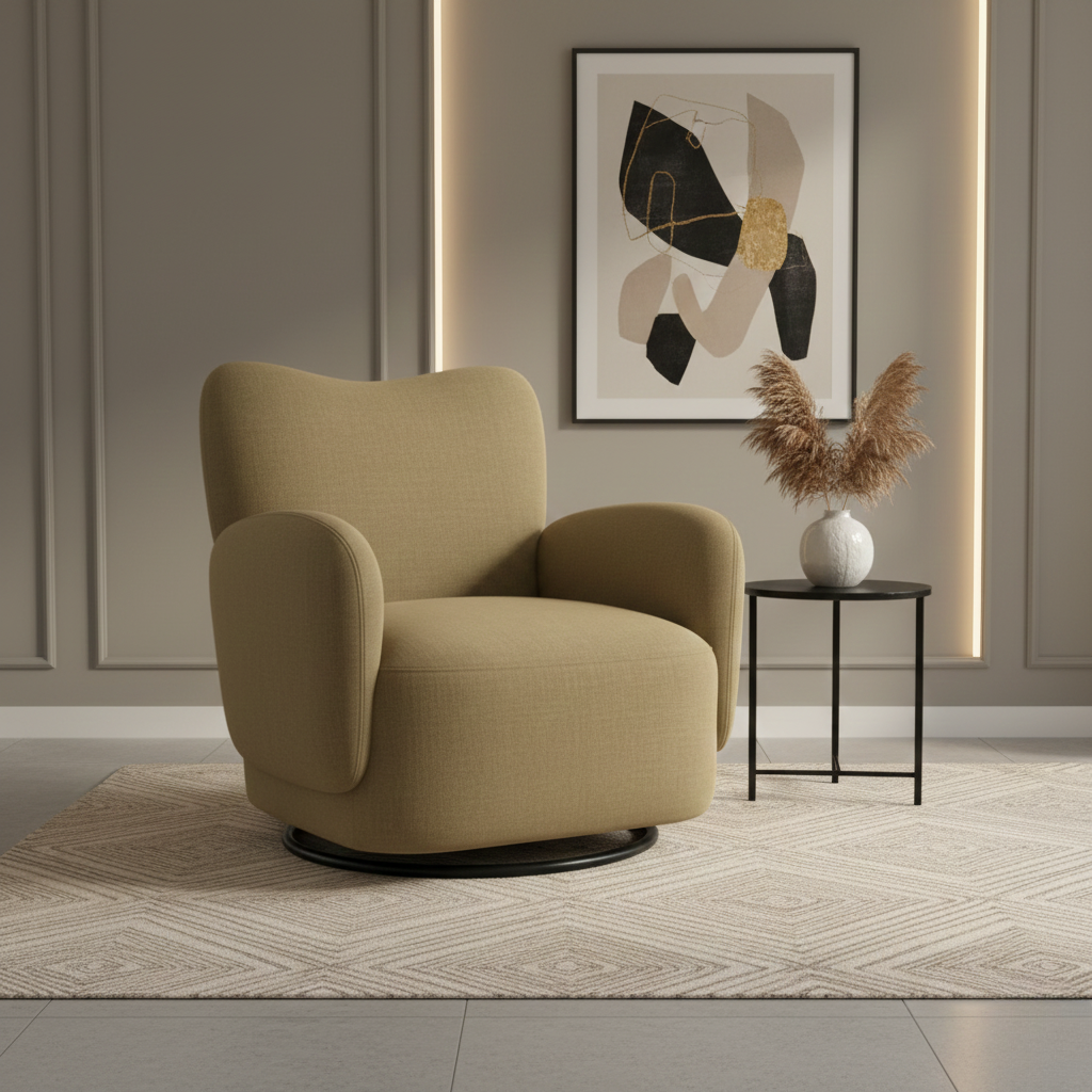 Every feature has been thoughtfully designed to elevate the user experience: the ergonomic armrests that cradle without pressure, the plush high-density cushioning that envelops without sinking, the swivel base that moves gracefully while maintaining impeccable stability. This is more than a piece of furniture?it is an invitation to inhabit comfort and refinement on a daily basis.