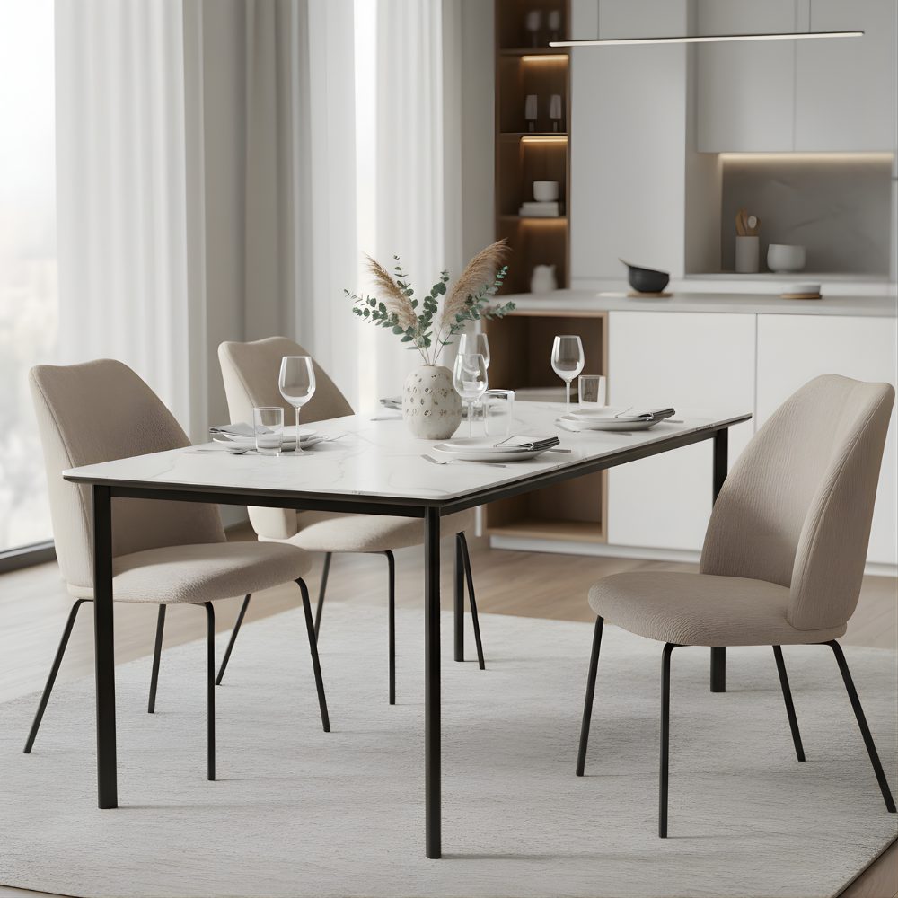 - Powder-Coated Metal Legs: A sleek, durable base resistant to scratches, corrosion, and wear, ensuring long-lasting elegance.