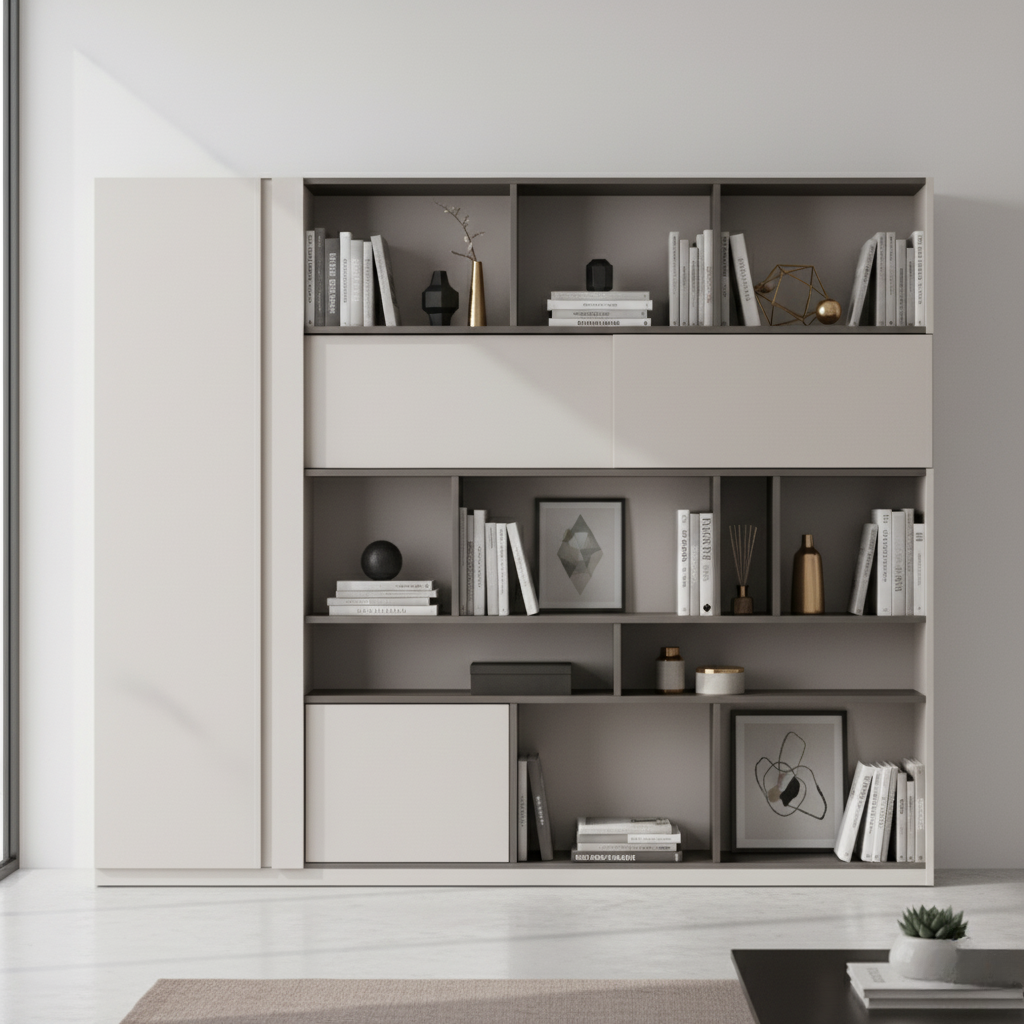 Its neutral palette and refined silhouette allow it to complement a wide range of interior themes: Scandinavian calm, industrial modern, or timeless contemporary. Wherever it stands, the Syntera Strata Book Cabinet elevates the atmosphere, embodying the perfect harmony between art and utility.