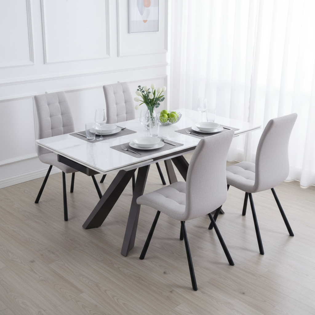 The ceramic top is a triumph of premium-grade craftsmanship, designed to resist the scratches, stains, and heat that ruin ordinary tables. No matter how frequently it is used, the surface remains immaculate, its polished elegance undimmed by time or daily life. Its refined texture allows effortless maintenance—simply wipe clean, and it shines like new. With the Archyx Dining Table, beauty is never fragile—it is as enduring as the moments shared upon it.
