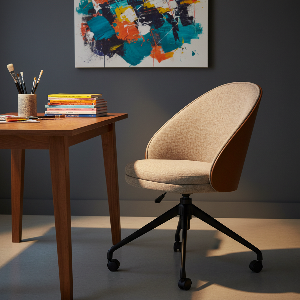 Dudukan dan sandaran yang terbuat dari plywood berlapis lembut membentuk kurva yang menenangkan tubuh, membantu menjaga postur ideal bahkan selama berjam-jam. Kaki metal yang kokoh menambah kekuatan dan sentuhan modern, memastikan stabilitas yang tahan lama dan estetika kontemporer. Baik ditempatkan di kantor rumah, ruang eksekutif, atau studio kreatif, Chair Auren berbaur dengan lingkungan sekitarnya sambil tetap menarik perhatian melalui kesan percaya diri yang halus.