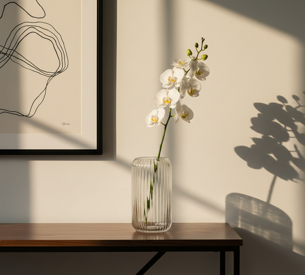 • Pernyataan Solo – Biarkan berdiri kosong di bawah cahaya alami, di mana vas menjadi patung pantulan yang selalu berubah.
