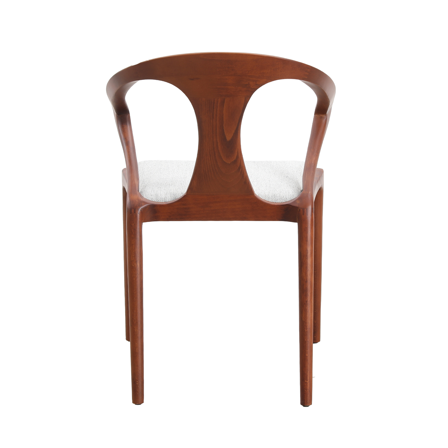 Fabric-Covered Seat – The cushioned seat is upholstered in a refined fabric covering, offering a soft yet supportive sitting experience ideal for long meals and conversations.
