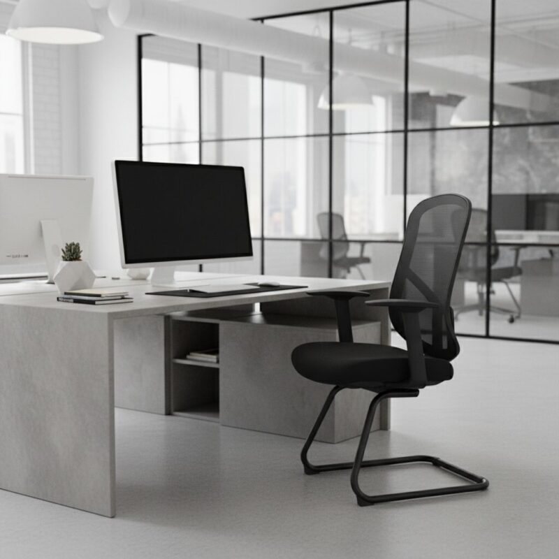 Keindahan Ergova Float Office Chair terletak pada fleksibilitasnya. Dengan rangka hitam ramping dan profil minimalis, kursi ini beradaptasi mulus pada beragam lingkungan profesional maupun hunian: