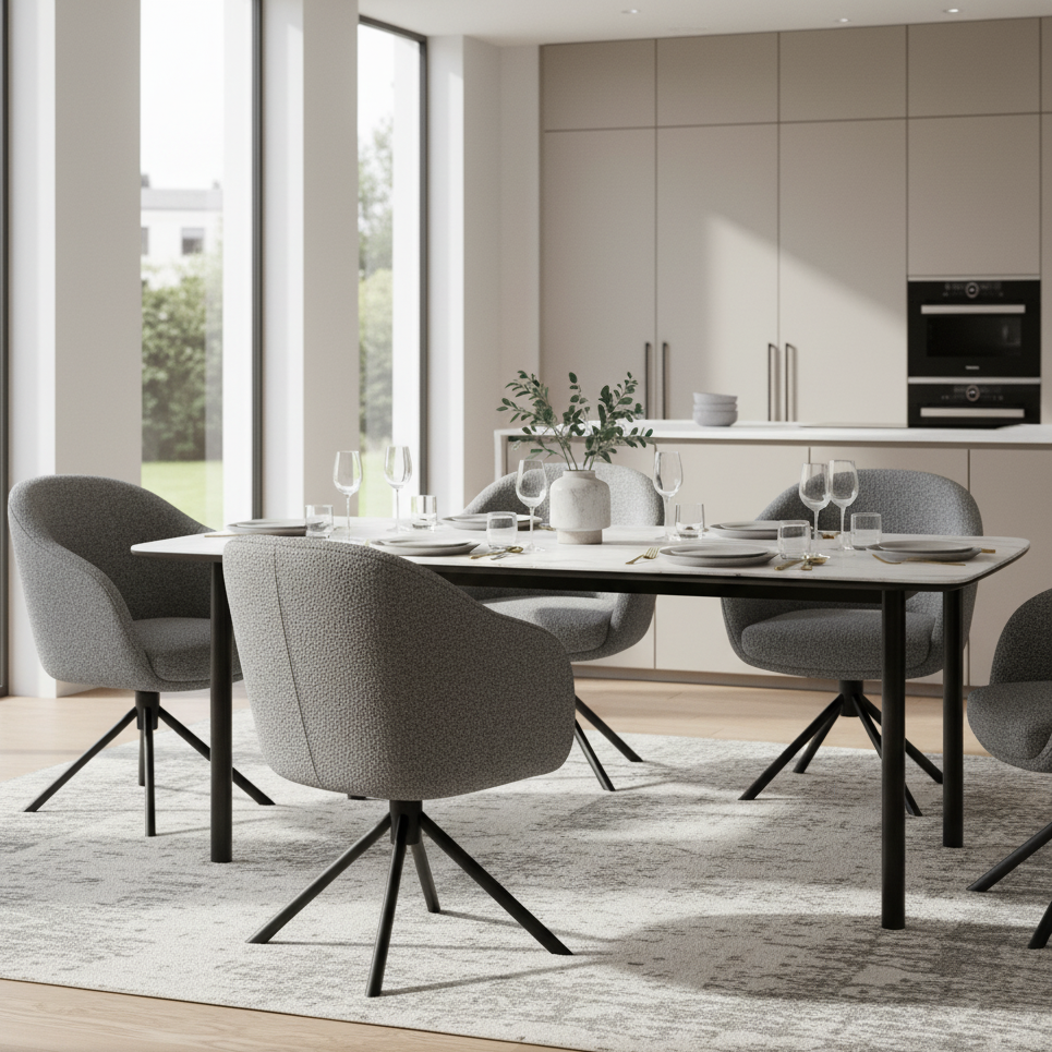 The Hexline Dining Chair combines modern sophistication with everyday comfort, making it an ideal choice for both casual meals and elegant gatherings. Upholstered in soft, durable fabric and supported by sleek powder-coated metal legs, it delivers lasting strength and refined style. Its ergonomic design ensures a comfortable seating experience, while the contemporary silhouette enhances any dining room with a touch of timeless charm.