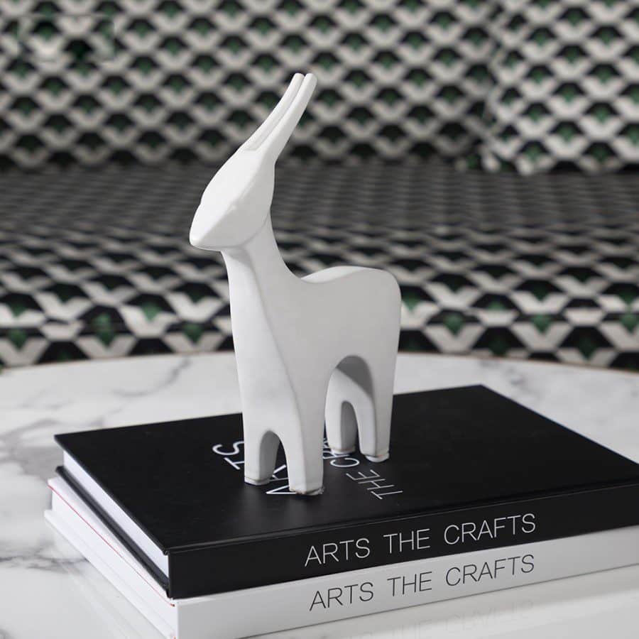 Hirsch merupakan dekorasi berbentuk hewan kijang dengan bentuk dan warna yang minimalis.
