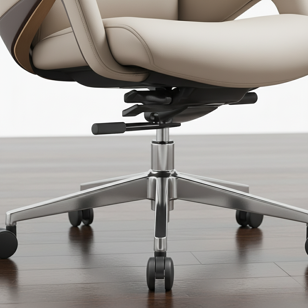 Fondasi krom yang kokoh tidak hanya meningkatkan stabilitas tetapi juga memberikan kesan elegan yang menyempurnakan gaya interior apa pun. Permukaannya yang tahan korosi dan roda yang mulus memberikan kombinasi kekuatan serta mobilitas tanpa usaha di berbagai jenis lantai.