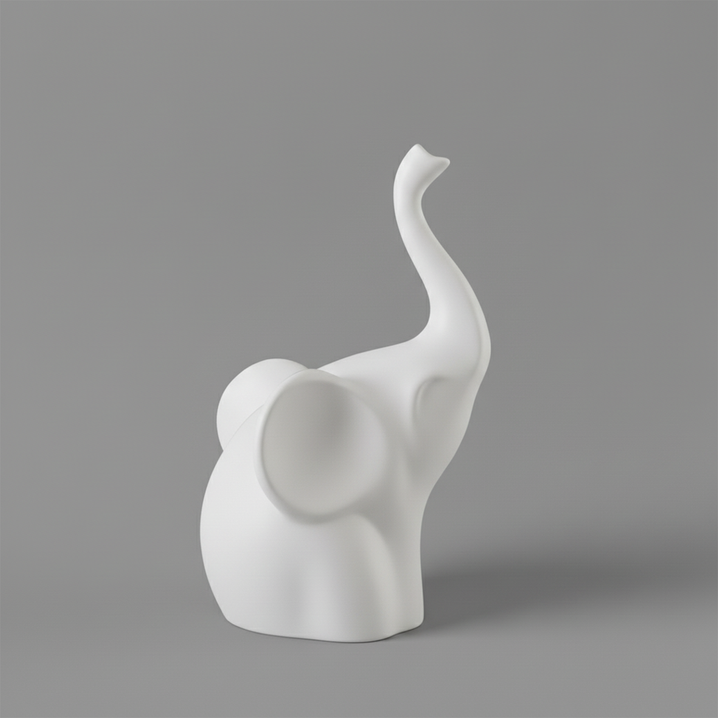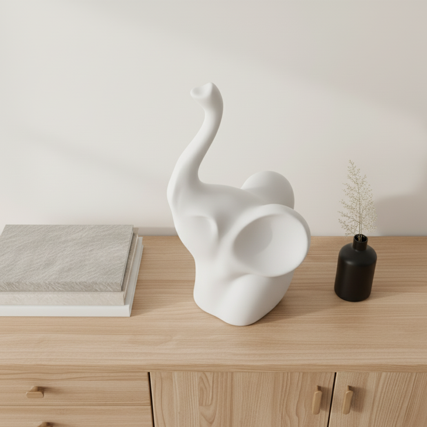 Dalam lanskap dekorasi rumah yang semakin dipenuhi produk massal tanpa karakter, Mihi White Medium hadir sebagai sosok yang menerobos keseragaman dan menghadirkan sentuhan seni yang memancarkan ketenangan, simbol keberuntungan, dan estetika modern yang abadi. Terinspirasi dari figur elegan seekor gajah—ikon kekuatan lembut, kebijaksanaan, dan harmoni—patung keramik berwarna putih ini menjadi karya dekoratif yang bukan hanya memperindah ruangan, tetapi juga membawa makna emosional yang dalam. Dengan garis desain yang halus, siluet yang bersih, dan permukaan matte yang menenangkan, Mihi White Medium menjadi pusat perhatian yang subtil namun tetap memikat, seolah menghadirkan kemurnian sekaligus kemegahan dalam satu bentuk.