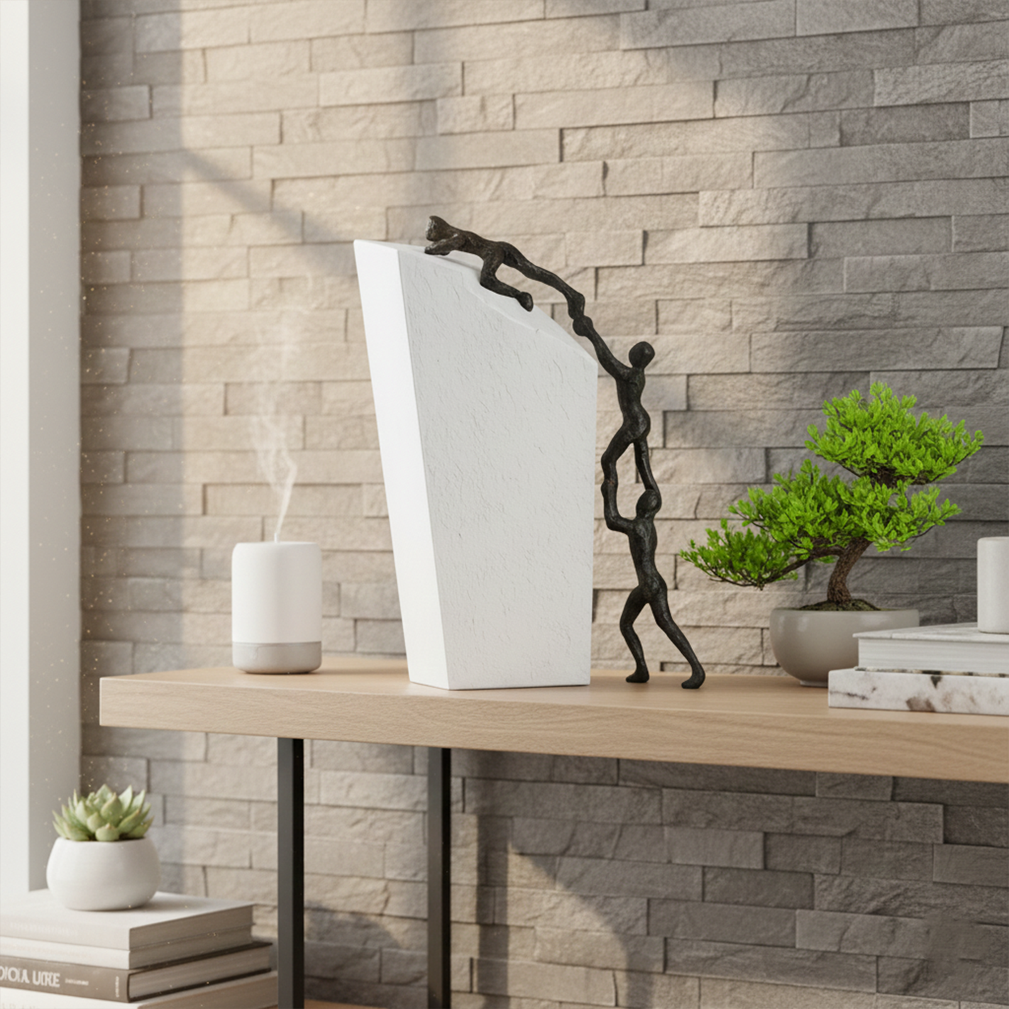 Dalam dunia interior modern yang bergerak cepat dan dipenuhi pilihan yang seringkali terasa generik, Naze Dekorasi Logam hadir sebagai sebuah karya seni yang mencerminkan ketenangan, kekuatan, dan keindahan esensial yang jarang ditemukan dalam dekorasi rumah masa kini. Dirancang dengan presisi artistik dan ditata layaknya pahatan kontemporer, dekorasi ini menampilkan bentuk figur manusia yang dituangkan dalam siluet logam yang elegan, menghadirkan sentuhan estetika yang memadukan filosofi, kreativitas, dan harmoni visual. Dengan ukurannya yang proporsional sehingga mudah ditempatkan di berbagai area rumah atau kantor, karya ini menjadi simbol kehadiran yang halus namun berkarakter kuat, seolah berbicara melalui kesederhanaannya yang memikat.