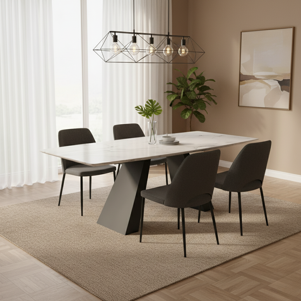 Every detail of the Omnic Dining Table is crafted with purpose. From its sintered stone top to powder-coated legs, the design blends strength and sophistication into one masterpiece.