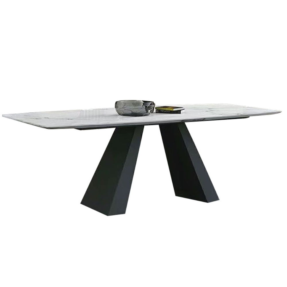 At its heart lies a sintered stone (Chinese ceramic) top, a material crafted through advanced processes that replicate thousands of years of natural stone formation in a fraction of the time. This surface delivers unmatched resistance to scratches, stains, and heat, making it effortless to use in real life without sacrificing elegance. Supporting this powerful surface are powder-painted metal legs, engineered for strength, stability, and modern sophistication.