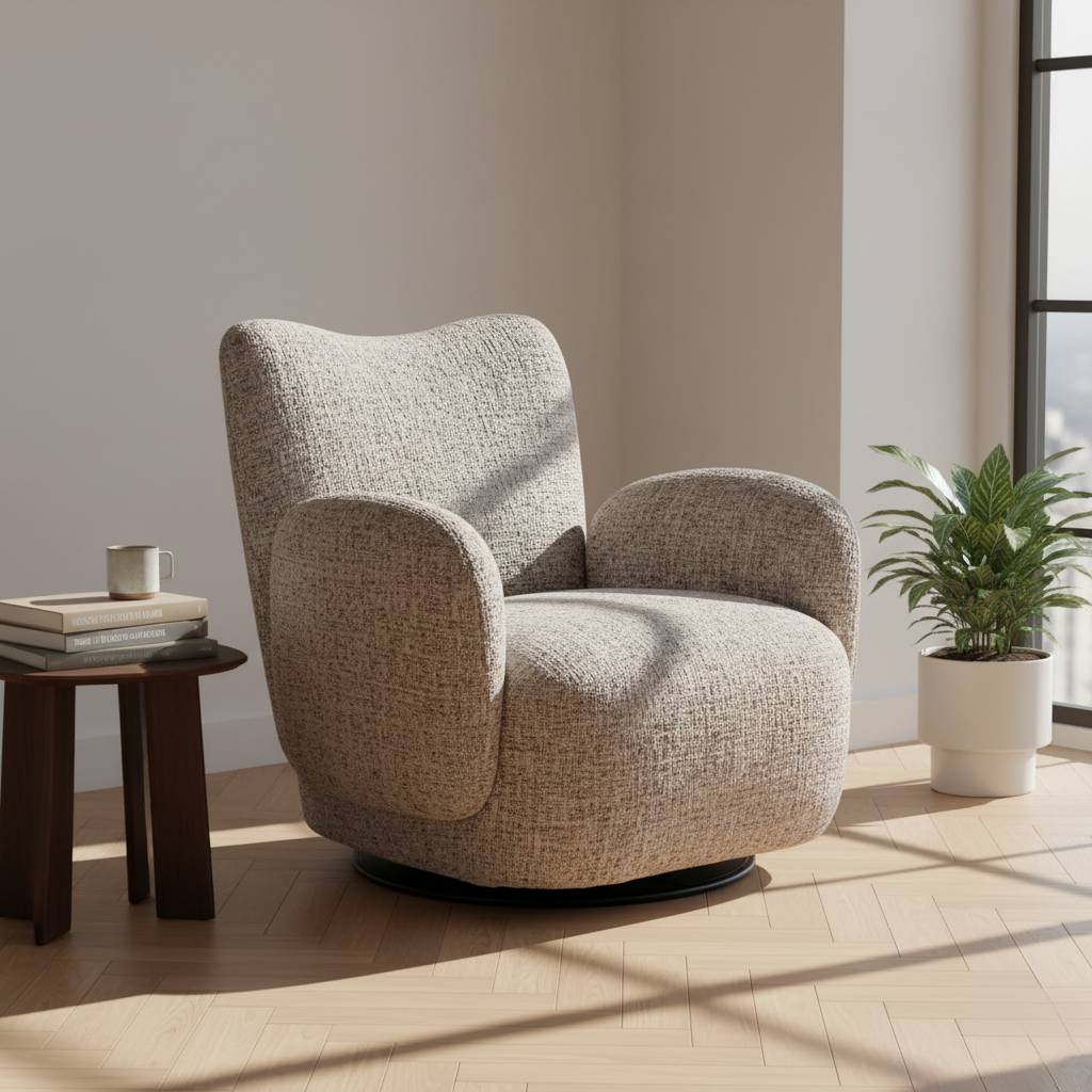 Home Living Spaces – Perfect for living rooms, reading corners, or media areas, where its swivel function enhances social and family interactions.