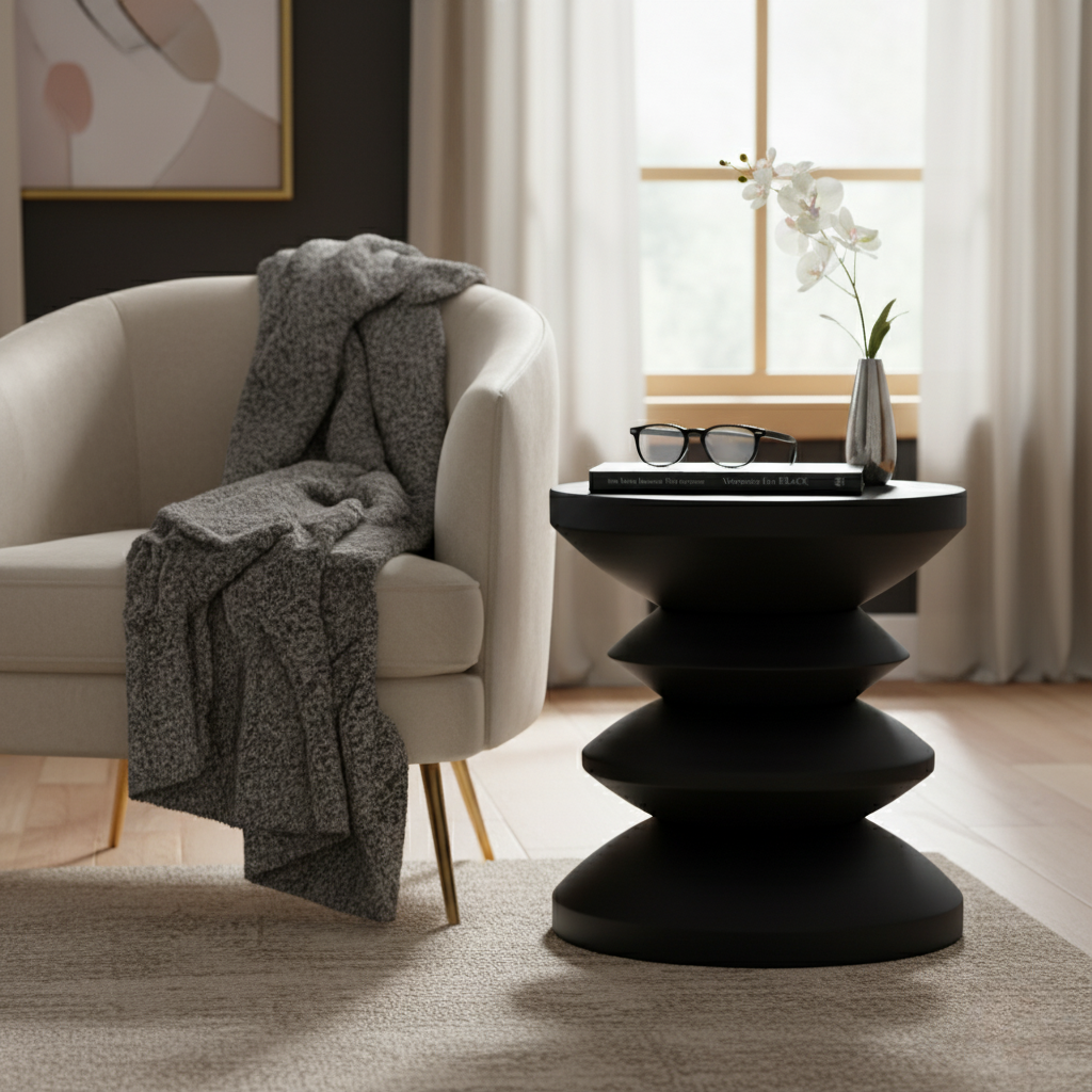 Quadra Side Table – Keanggunan Eksklusif Hitam Matte