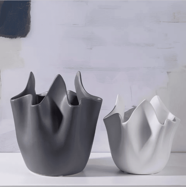 Romolo Wide White is a collection of flower vases with a organic shape and sharp on the egde. Mix Romolo Wide White vase with your favorite bouquet of flowers. Comes with ceramic base material, Romolo Wide White can be one of the best decorations for your space.