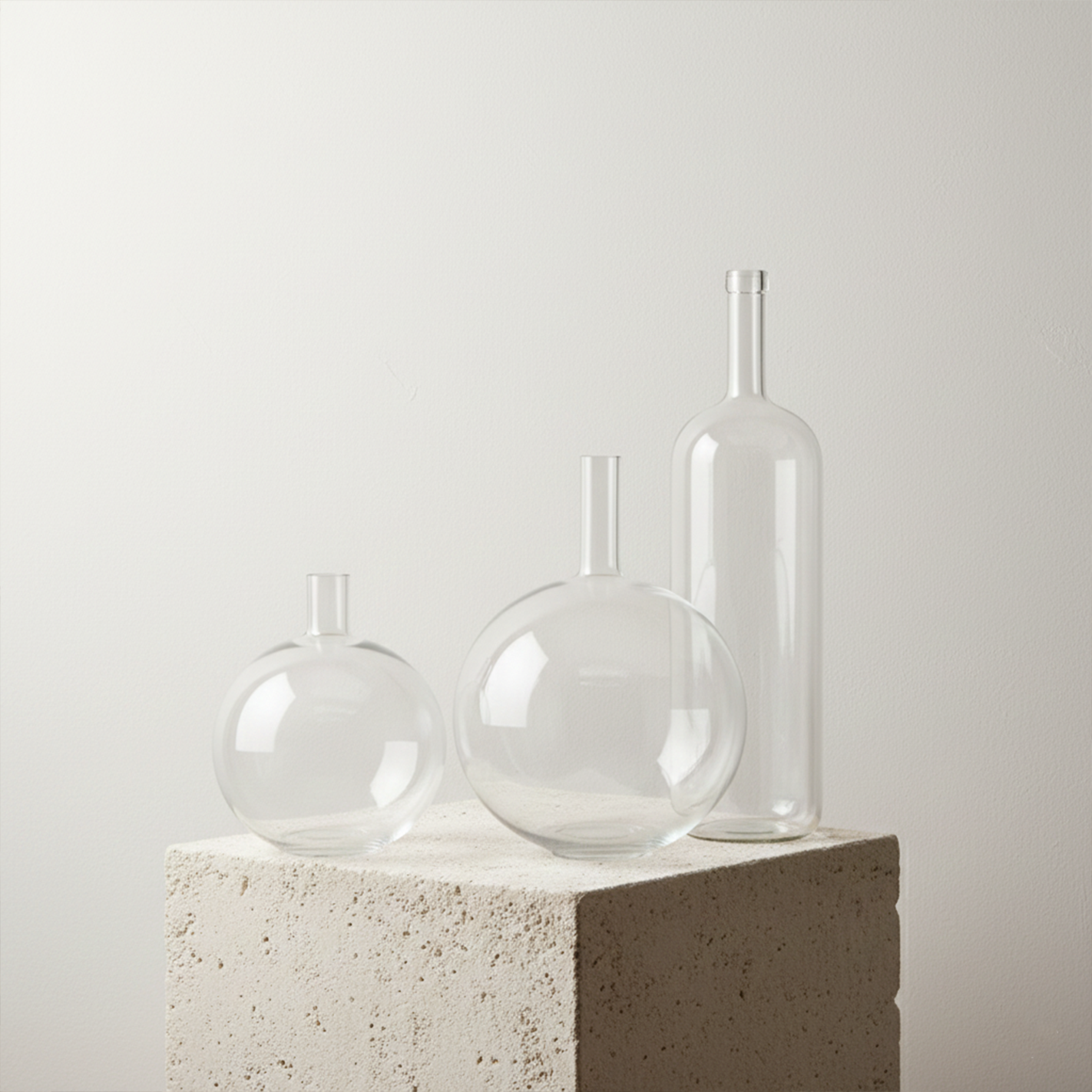 Setiap Sehr Vas Kaca dibuat melalui proses yang mengutamakan ketelitian dan konsistensi, memastikan setiap varian memiliki karakter yang sama kuatnya dalam satu koleksi utuh.