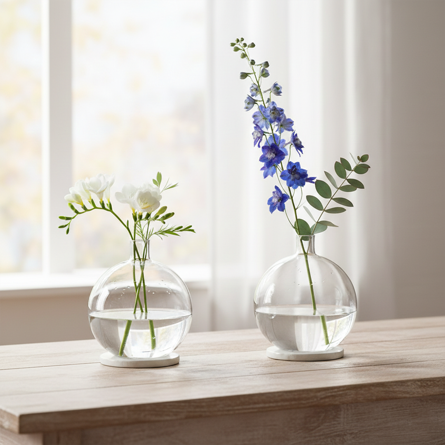 Transparansi kaca memantulkan cahaya alami dengan lembut, memperkuat kesan lapang dan tenang. Dalam tema interior modern, skandinavia, japandi, maupun kontemporer, Sehr Vas Kaca selalu menemukan tempatnya—sebagai elemen yang tidak mendominasi, namun justru menyempurnakan keseluruhan ruang.