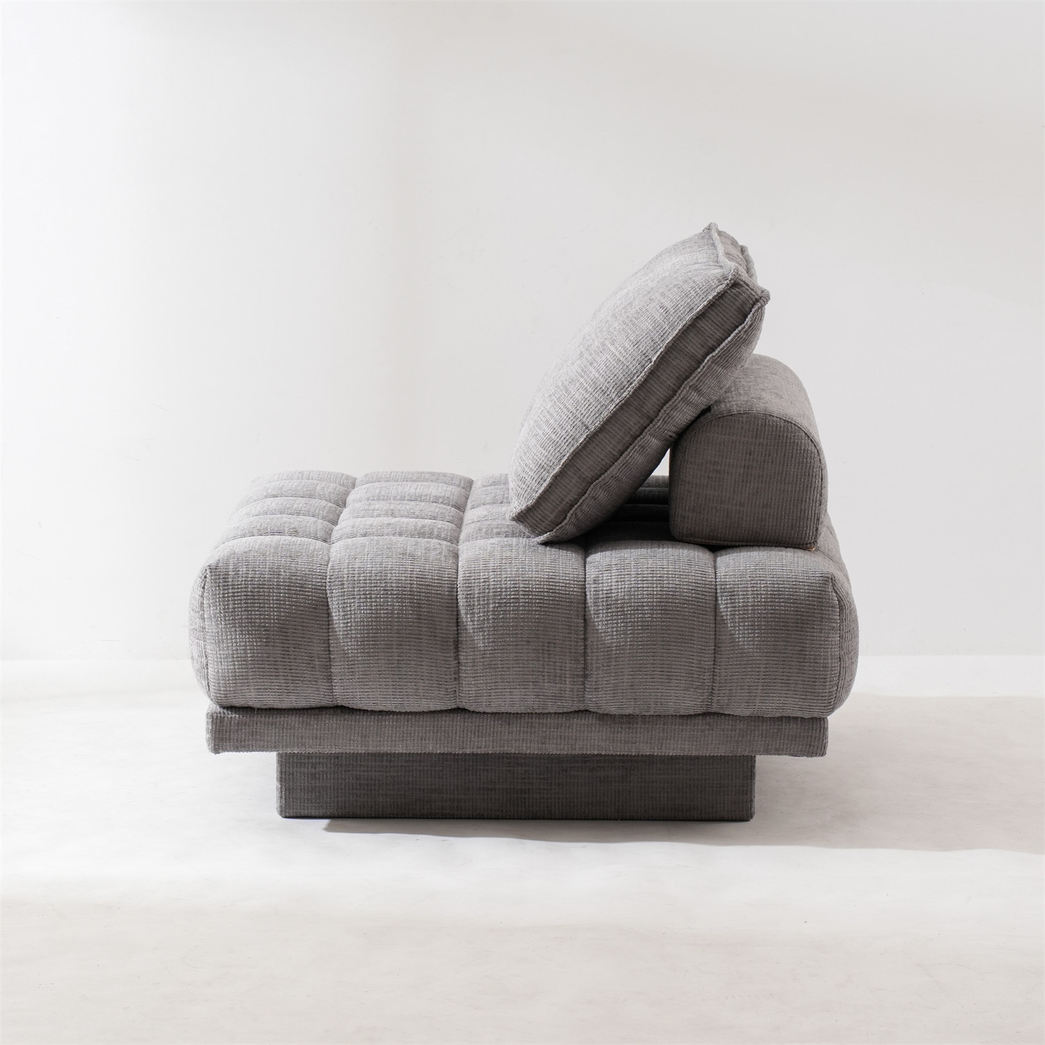 Measuring 95 x 95 x 78 cm, it strikes the perfect balance between spacious indulgence and practical dimensions, making it an effortless fit for modern living spaces. Its form is sculpted for ergonomic support, allowing the body to sink naturally into a posture of ease while retaining a sense of poised elegance. Every detail has been carefully considered—from the sturdy yet graceful wooden shelf foundation to the breathable, touchably soft upholstery—ensuring a piece that is as functional as it is beautiful.