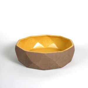 - Bagian luar memiliki tekstur geometris faceted yang memberikan tampilan modern, artistik, dan kaya dimensi visual.