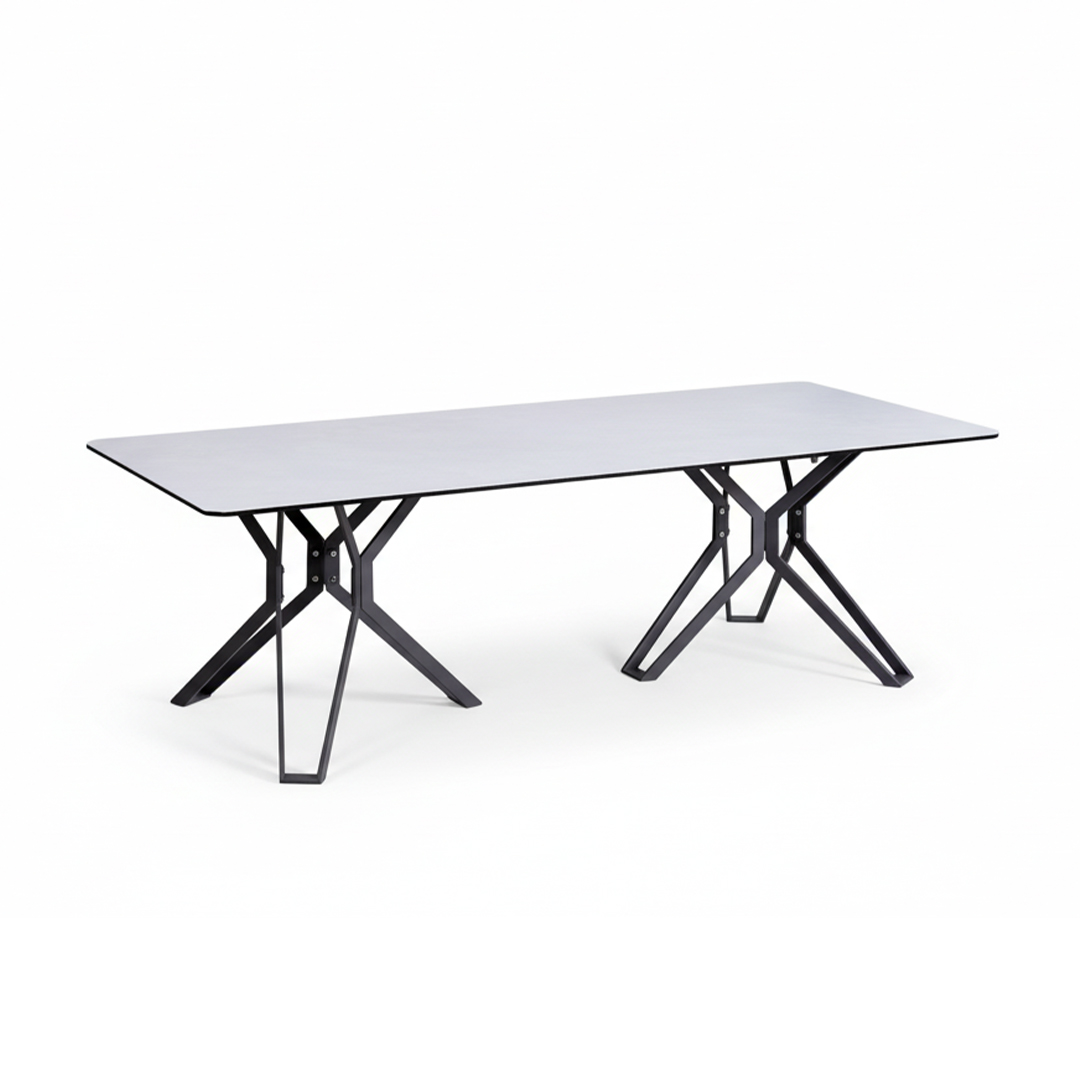Di bawah permukaan mewah ini terdapat alas logam yang direkayasa presisi, dirawat dengan lapisan serbuk canggih untuk memastikan kekuatan yang tak tergoyahkan, daya tahan, dan finishing matte ramping yang tahan aus. Setiap detail, dari proporsinya yang seimbang hingga desain ergonomisnya, telah disempurnakan untuk menciptakan tidak hanya meja, tetapi pengalaman bersantap yang ditinggikan. Apakah itu makan malam intim untuk dua orang atau pesta meriah untuk sepuluh orang, Strato mengubah setiap pertemuan menjadi kenangan yang dibangun di atas keindahan dan kekuatan.