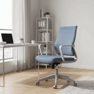 • Mesh backrest with fixed lumbar support – Promotes airflow while gently supporting the spine, ensuring healthy posture and comfort during extended sitting sessions.