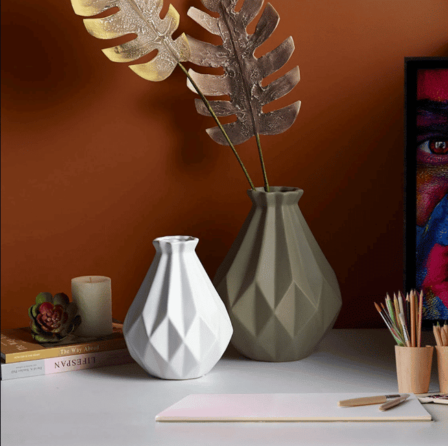Available in ceramic and color range of white and charcoal. The Roch vase is beautiful with or without flowers. Place a single vase as a statement piece on the table or arrange a group of vases for a striking look.