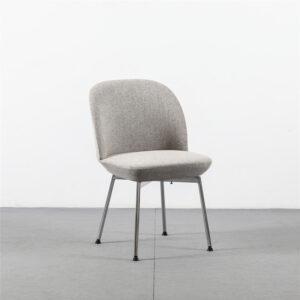 Its light grey upholstery strikes a graceful balance between contemporary minimalism and timeless sophistication, blending seamlessly into dining rooms, offices, or hospitality venues. With an ergonomically shaped seat that supports natural posture, the Velora ensures both comfort and style during a quick breakfast, a long dinner party, or hours of conversation. More than just a piece of furniture, the Velora is a fusion of strength, elegance, and responsibility, redefining the standards of modern seating.