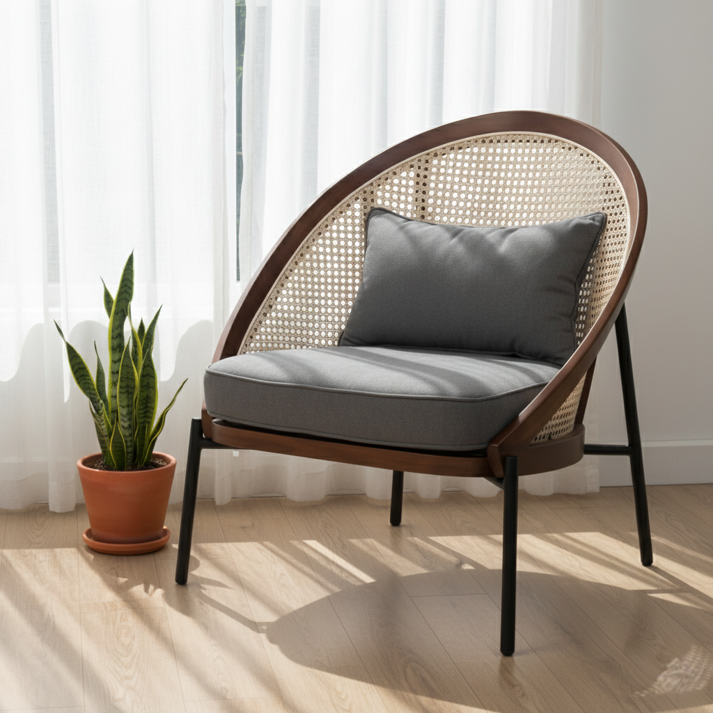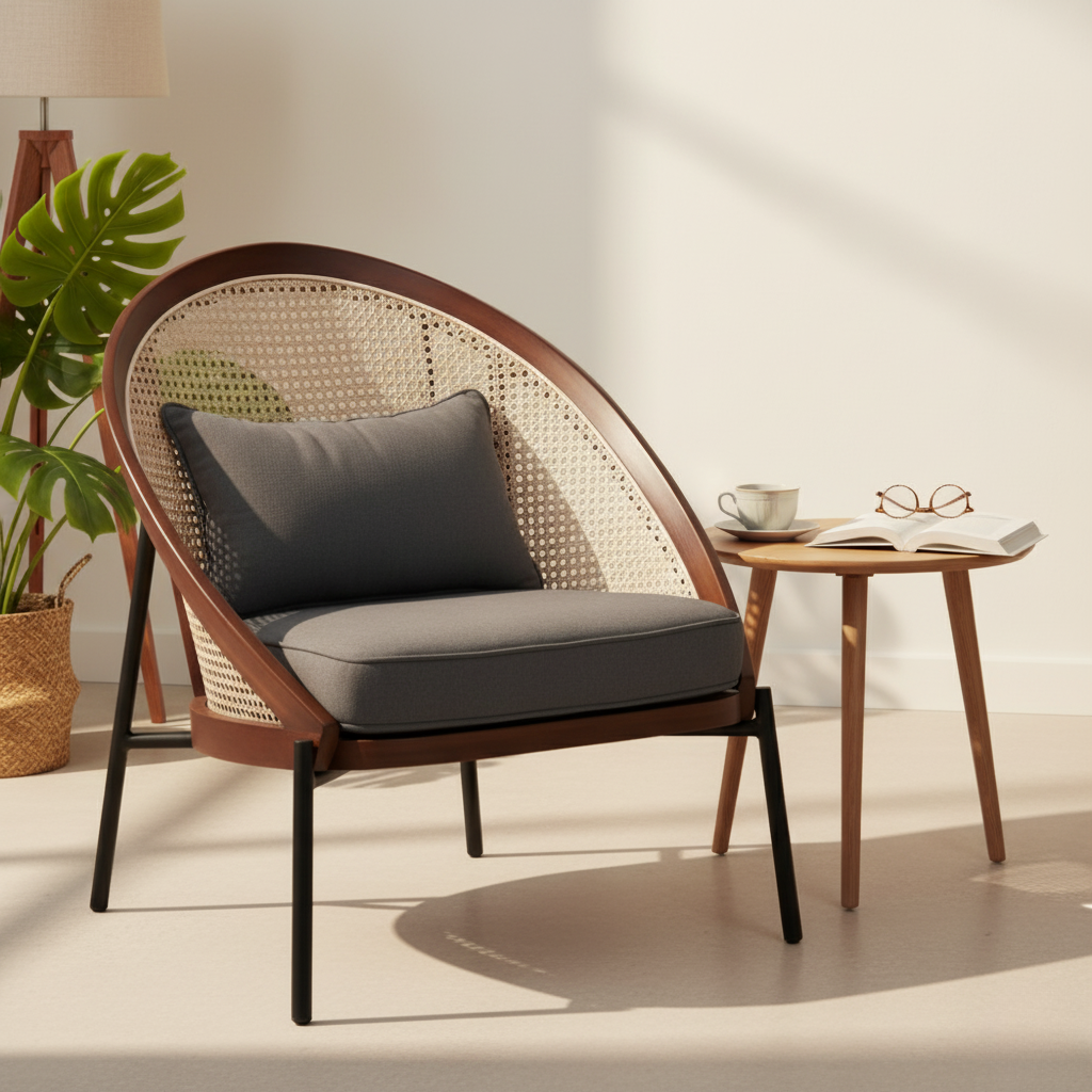 Veneira Lounge Chair adalah perpaduan apik antara seni modern dan keahlian pembuatan furnitur yang tahan lama. Dirancang untuk mereka yang menghargai kombinasi kenyamanan, kecanggihan, dan keberlanjutan, kursi ini mengubah ruang mana pun menjadi tempat perlindungan yang penuh ketenangan. Rangkanya dibuat dari kayu beech solid yang terkenal akan kekuatan alami, tekstur halus, dan estetika klasiknya. Sandaran rotannya membawa nuansa ketenangan alami, memberikan sirkulasi udara dan sentuhan organik yang selaras dengan berbagai tema interior—mulai dari minimalis kontemporer hingga nuansa tropis yang hangat.